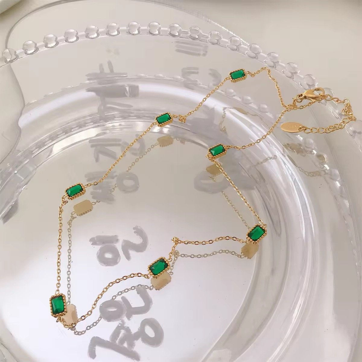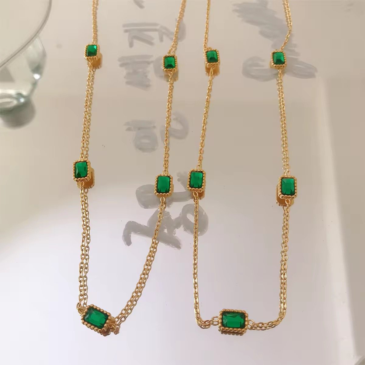 ছাড়Green Stone 18k Gold Plated Stainless Steel Birthstone Necklace